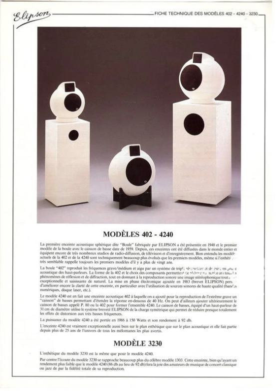 Ce partenariat entre l’ORTF et Elipson durant les années 1960 donna naissance à d’autres modèles d’enceintes mythique, la 4050, 4240, 4040, 502, 402, 302 qui au fur et à mesure ont équipés les studios d’enregistrement.