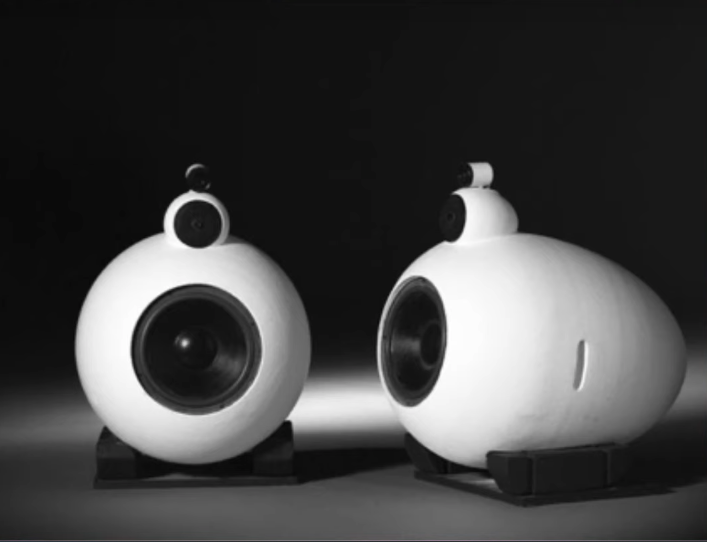 Dans cette conception le haut parleur est orienté vers le haut et l’oreille de lapin sert à orienter le son vers l’auditeur, c’est un boitier sphérique à résonateur interne dont l’architecture offre une cohérence des timbres et une homogénéités des registres sonore, ce système de coque et de réflecteur permet de sonoriser de grand espace avec précision et qualité.